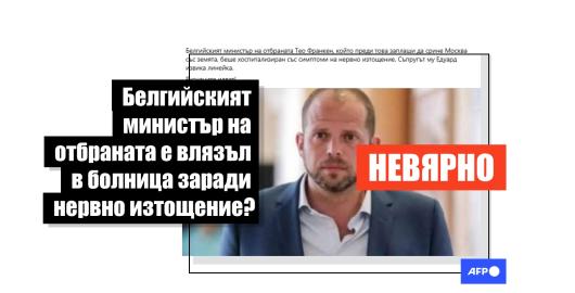 Снимка Война в Украйна Публикувано на 13.11.2025 Белгийският министър на отбраната не е хоспитализиран след спора си с Медведев и няма "съпруг"