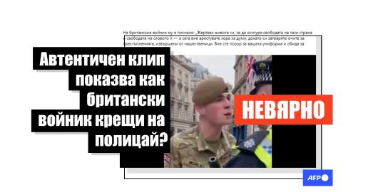 Снимка Изкуствен интелект Публикувано на 23.01.2026 Този клип, в който британски войник крещи на полицай, е създаден с изкуствен интелект