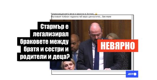 Снимка Публикувано на 13.10.2025 Британският премиер не е "узаконил браковете между братя и сестри" или "между родители и деца"