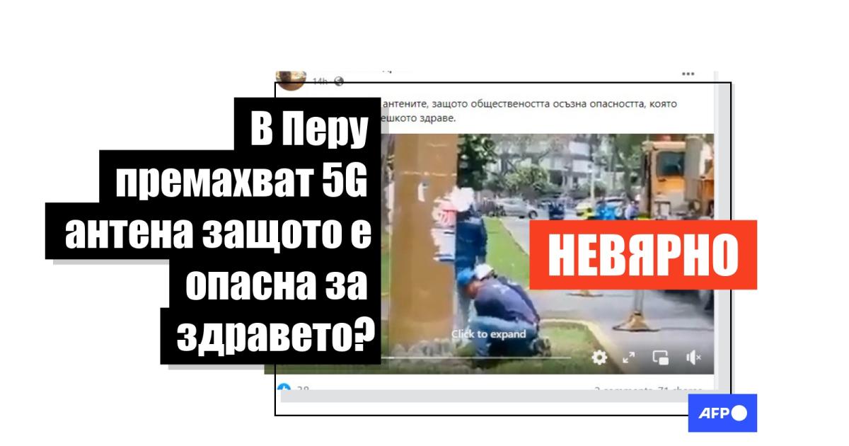 Но внушението, че видеото показва премахване на 5G aнтена, тъй като тя застрашава здравето, е подвеждащo. На кадрите се вижда демонтирането на антена за мобилни телефони в Мирафлорес, квартал на перуанската столица Лима, през ноември 2019 г. Според общината съоръжението е било монтирано без разрешение.