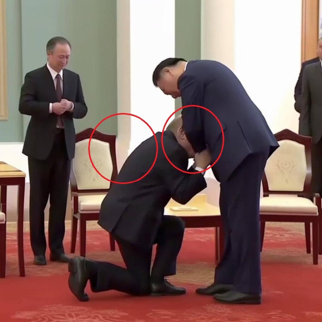 За добилото популярност изображение, за което се твърди, че показва Путин, коленичещ пред Си, потребители на Twitter като италианския журналист Давид Пуенте обърнаха внимание, че декорът в стаята е различен от този на снимките, публикувани от медиите, отразявали събитието: