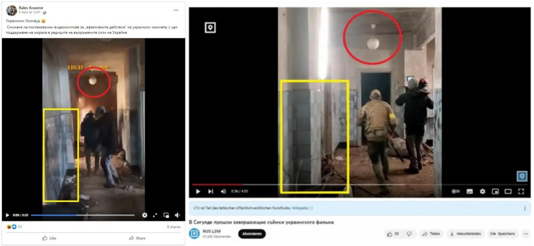 Някои подробности от споменатия по-рано репортаж на LSM също потвърждават разказа на Кочарян. В него се виждат същите сцени като в споделените в момента публикации. LSM ги описва като снимки на късометражен филм, а не като новини от Украйна.