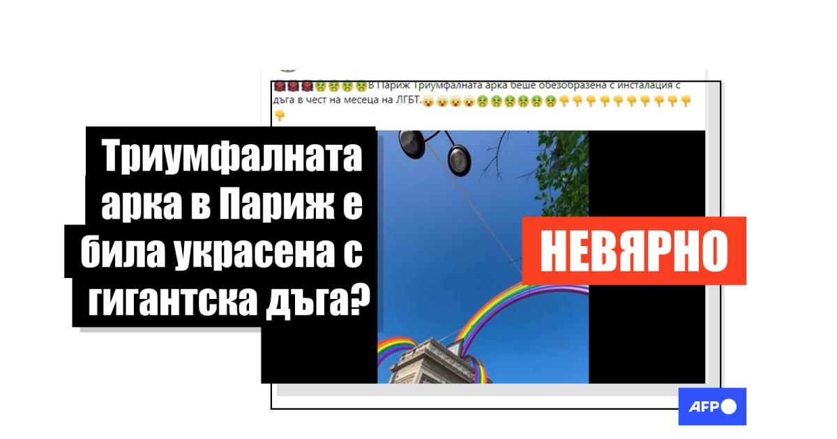 "В Париж Триумфалната арка беше обезобразена с дъга в чест на месеца на ЛГБТ", гласи Facebook публикация от 3 юни 2023 г., включително серия от емотикони, изразяващи неодобрение. В публикацията е споделен кратък видеоклип на една от забележителностите на Париж - Триумфалната арка, заобиколена от нещо, което изглежда като голяма дъга.