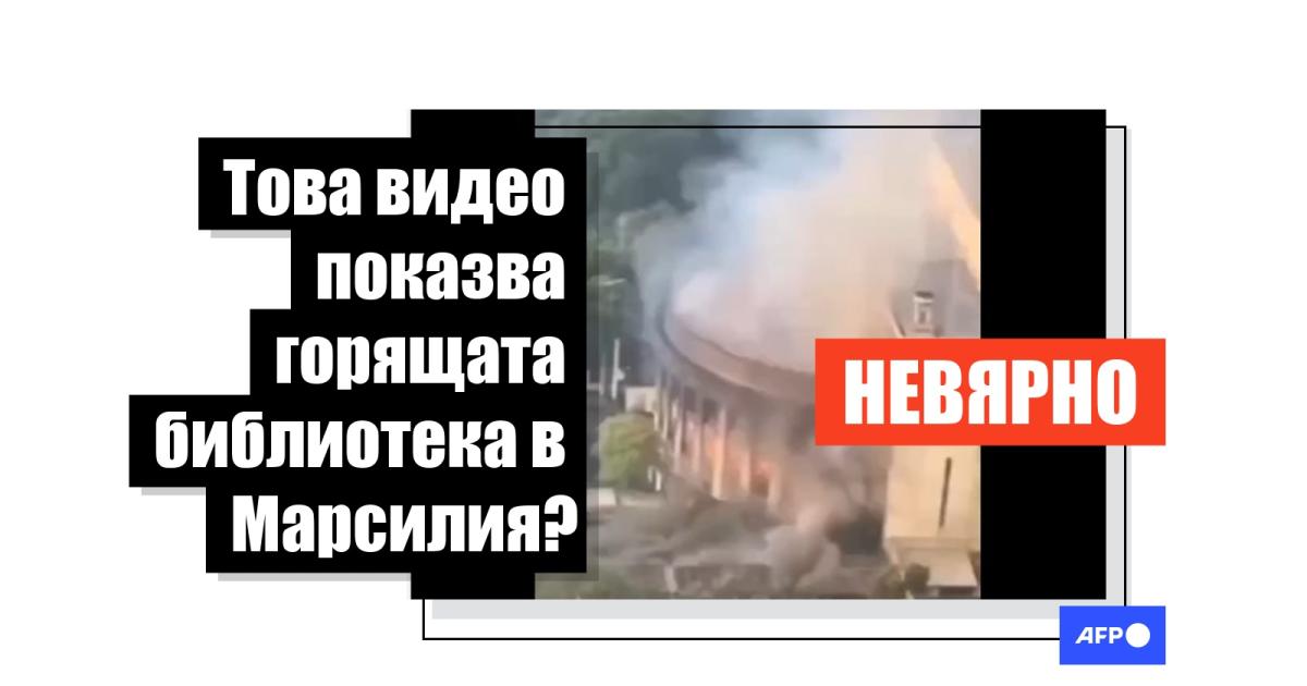 "В Марсилия мигранти изгориха една от най-големите библиотеки във Франция - Алказар", започва Facebook публикация придружена от кратко видео на сграда в неокласически стил, обхваната от пламъци. От 5 юли 2023 г. постът е споделен над 200 пъти.