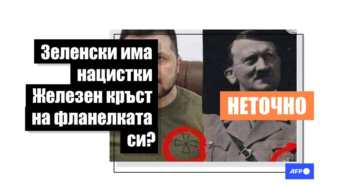 "Сигурно е Случайност", гласи Facebook публикация, споделяйки снимки на Зеленски и Хитлер. И на двете снимки е направено червено кръгче, за да се подчертаят два детайла - кръстът, изрисуван върху униформената тениска, която носи украинският президент, и медалът "Железен кръст" на ревера на нацисткия лидер. От 17 юли 2023 г. насам публикацията е споделена над 15 000 пъти.
