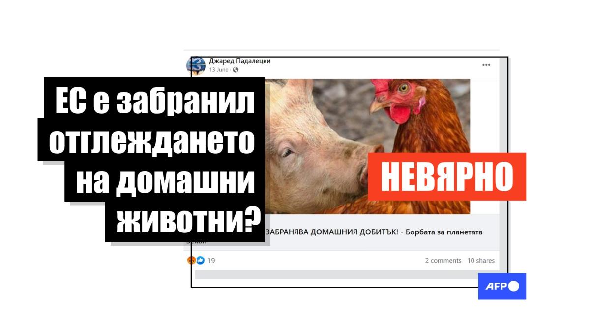 Запитан дали има планове за забрана на домашното животновъдство, свинете и говедата, пресцентърът на българското министерство на земеделието отговори на AFP в имейл, получен на 6 юли 2023 г., че "тези твърдения не са верни".