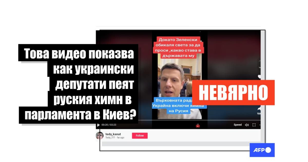 В първите 51 секунди на видеото се чува руският национален химн, докато украинските депутати стоят и пеят във Върховната рада.
