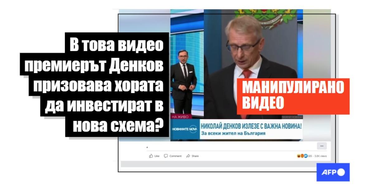 Анализирайки видеозаписи от пресконференции на Денков след назначаването му за министър-председател на 6 юни 2023 г., AFP установи, че в измамата е използван видеозапис от брифинг от 27 юни 2023 г. , в който участват министрите на правосъдието и на вътрешните работи.