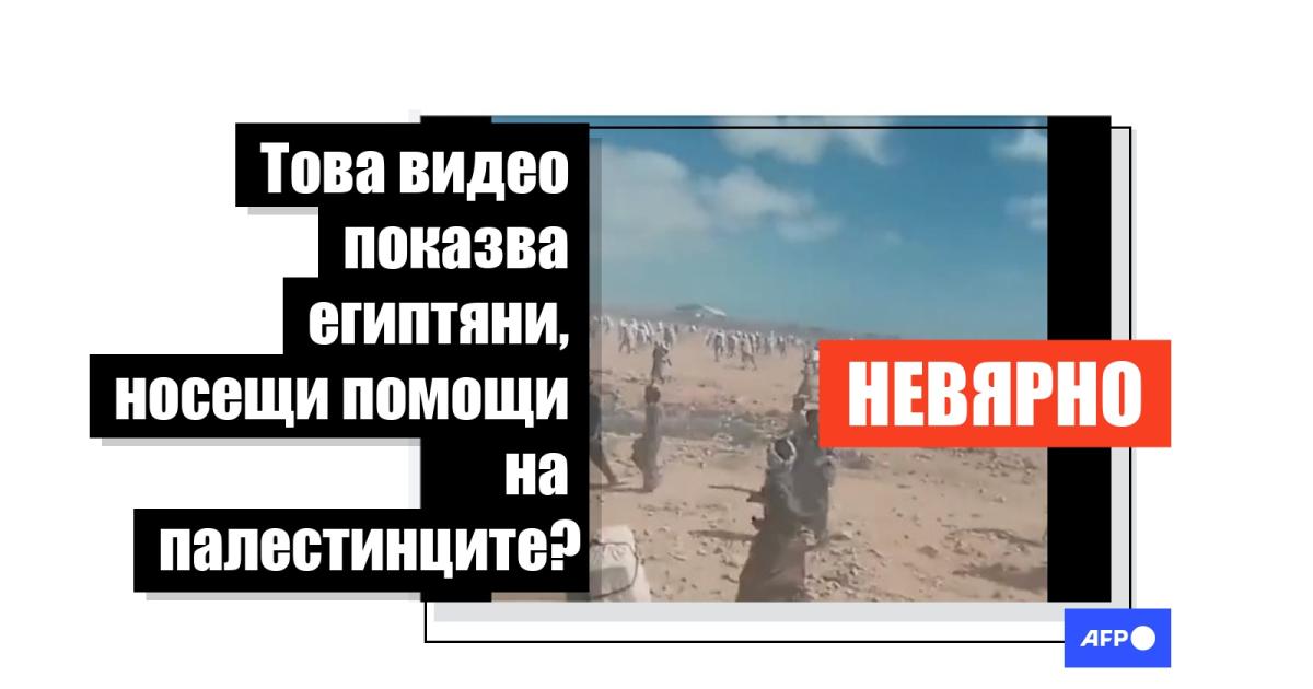 Във видеото към публикация във Facebook на български, споделена повече от 16 000 пъти, виждаме множество мъже, които вървят през пустинята с големи правоъгълни раници на гърба си. "Египтяни влизат в Газа, за да донесат вода и храна на палестинците там", гласи постът от 14 октомври 2023 г. Подобни твърдения и видеоклипове се споделят и на езици като френски , индонезийски и сръбски.
