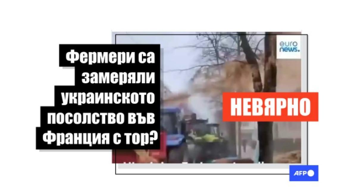 Не, това видео не показва фермери, замерящи с тор украинското посолство в Париж