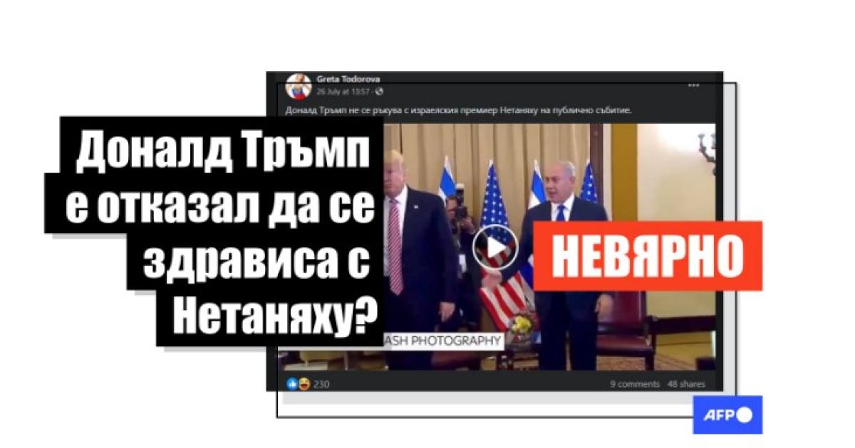 Това видео от 2017 г. е изрязано, за да изглежда, че Тръмп е отказал да стисне ръката на Нетаняху