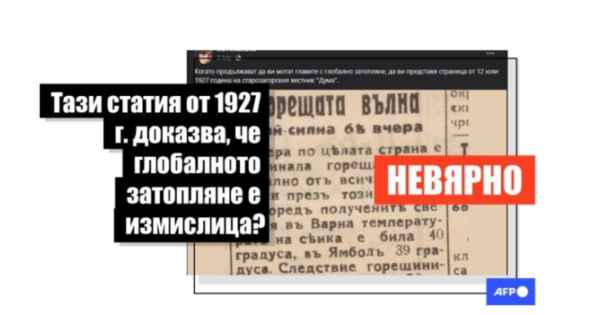 "Когато продължават да ви мотат главите с глобално затопляне, да ви представя страница от 12 юли 1927 година на старозагорския вестник "Дума"", се казва в публикацията във Facebook, в която се споделя изрезка от статия от стар вестник.