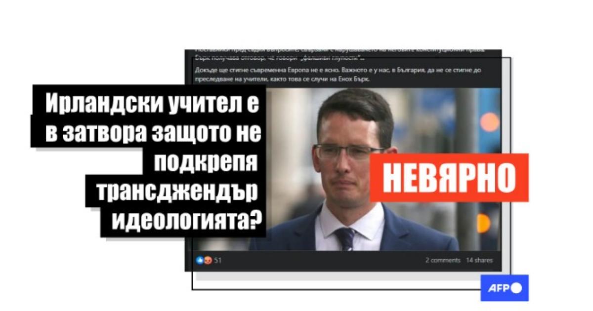 "Премеждията на ирландския учител Енох Бърк! Ирландският учител Енох Бърк (на снимката) е вкаран в затвора за трети път, защото настоява, че има само два пола - мъжки и женски", започва публикация във Facebook от 4 септември 2024 г. "Ирландската полиция арестува Енох Бърк, учителят, който отказва да подкрепи и утвърди трансджендър идеологията", гласи друга публикация. Към нея е качено видео на човек, който бива отвеждан от Garda (ирландската полиция). "Имам право да работя. Имам право да бъда тук", казва мъжът. Чува се и женски глас, който крещи: "Срам за вас, Гарда!" и "Арестувате го, защото отказва да подкрепи джендър идеологията!".