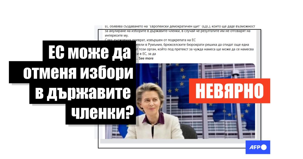 "В никакъв случай ЕС няма нито правомощието, нито намерението да анулира избори в държавите членки на ЕС. Твърденията в противен смисъл са неточни, подвеждащи и част от дезинформационна кампания", посочи Натали Лоазо пред AFP.