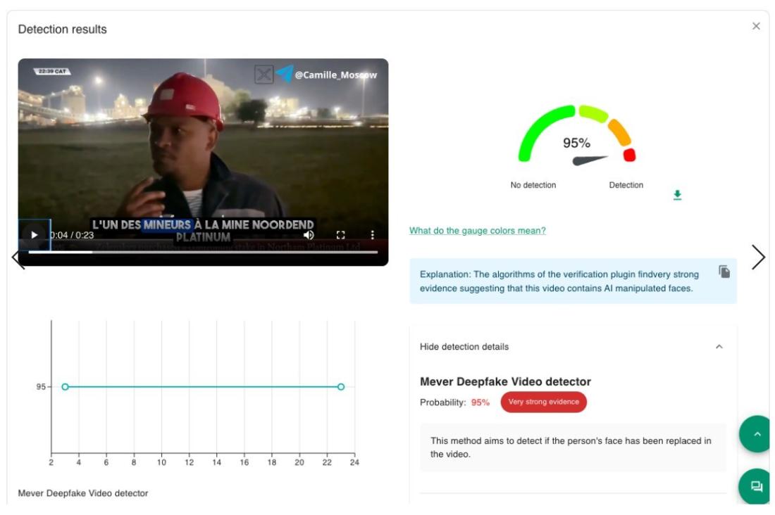 AFP анализира откъса с помощта на инструмента за откриване на deepfake видеа на InVID-WeVerify. Инструментът установи "сериозни доказателства", че видеото съдържа манипулация, направена с помощта на изкуствен интелект.