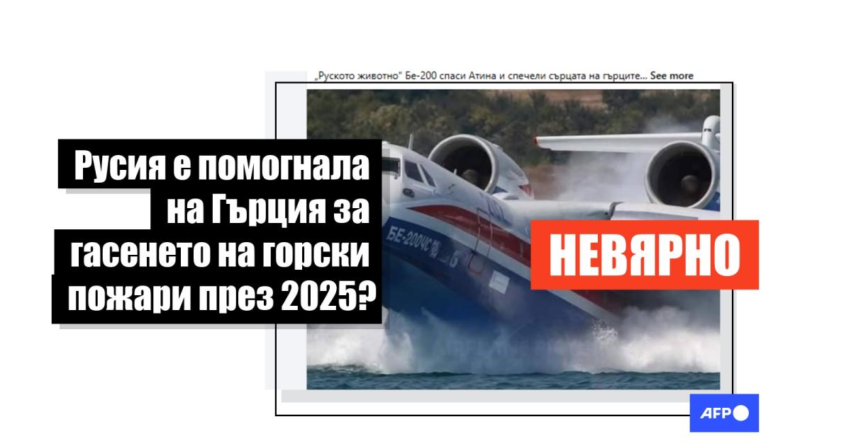 Твърдението, че руски самолети са помагали за гасенето на горски пожари в Гърция тази година, обаче е невярно. Информацията в публикациите произхожда от статия от 2021 г., но се разпространява подвеждащо, сякаш описва настоящи събития. В момента руските самолети, включително Бе-200, не могат да участват в противопожарни операции в държави от ЕС, тъй като лицензите им бяха отнети вследствие на санкциите срещу Русия заради войната в Украйна. Представители на гръцката противопожарна служба потвърдиха пред AFP, че руски самолети не са участвали в борбата с пожарите в Гърция през 2025 г.