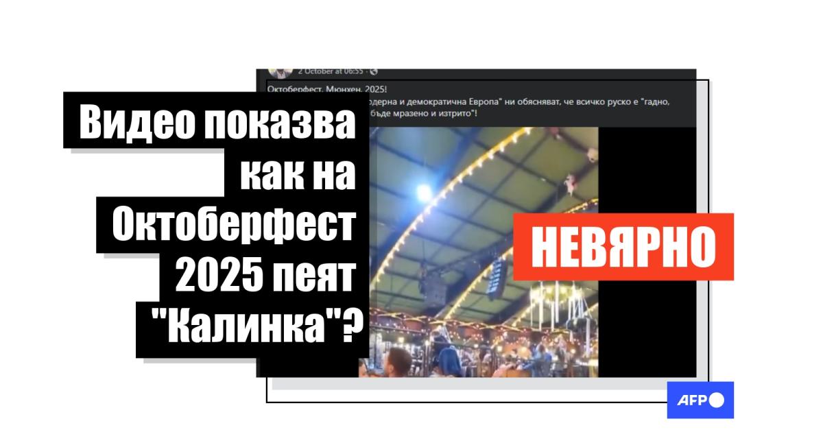 "Октоберфест, Мюнхен, 2025! ...докато "лидерите на модерна и демократична Европа" ни обясняват, че всичко руско е "гадно, отвратително, трябва да бъде мразено и изтрито!", гласи публикация във Facebook от 2 октомври 2025 г., споделен над 100 пъти. Към нея има кратък клип, показващ шатрата на фестивала и хора, които пеят руската песен "Калинка" и танцуват. Други потребители са споделили същото видео със сходно описание.