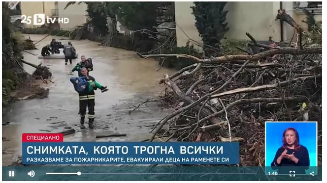 Автентична снимка, на която се виждат спасители, носещи малки деца по време на спасителната операция, стана популярна в интернет, както разказа bTV. Снимката е направена през деня: