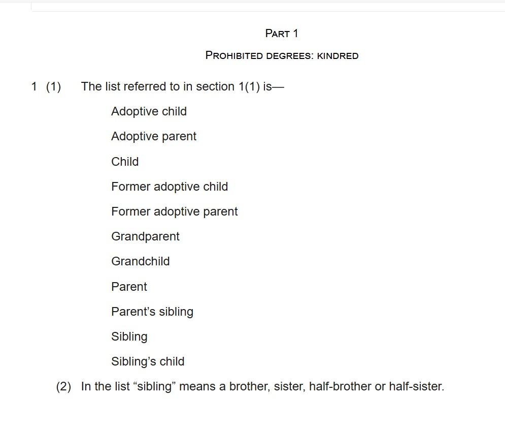 Браковете между първи братовчеди не са забранени от британския Закон за брака от 1949 г. и неговите последващи изменения. Противно на твърденията във Facebook публикациите обаче, законът забранява бракове между редица преки кръвни роднини, включително между родители и деца, както и между братя и сестри.