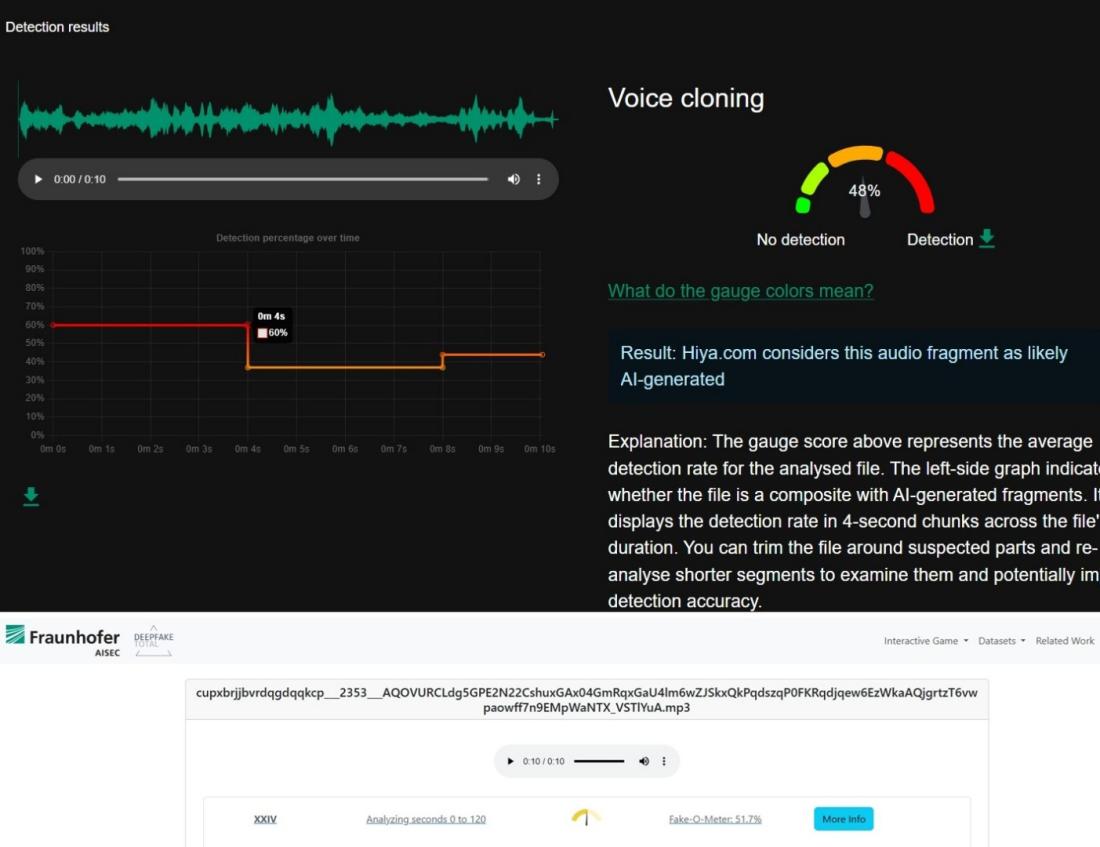 Според инструмента за проверка на факти InVID-WeVerify на AFP, аудио детектора Hiya и Deepfake Total на Института Фраунхофер, аудиозаписите на видеото са били генерирани с помощта на изкуствен интелект. За аудиофайловете оценка от 50% показва силно наличие на изкуствен интелект.