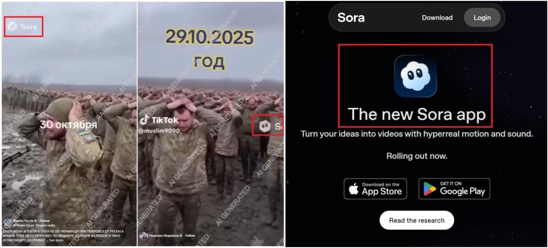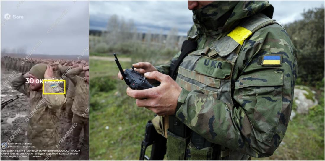 Продължаващите преговори за постигане на мир в Украйна по плана, координиран от САЩ, поставят Киев под натиск да направи отстъпки, включително да се откаже от територии, за да прекрати руската инвазия, продължаваща вече близо 4 години. Докато се водят интензивни дипломатически усилия за прекратяването на войната, сраженията на фронта продължават, особено в източна Украйна, където руските сили се опитват да превземат стратегическия град Покровск. На този фон в България се разпространяват видеа, създадени с изкуствен интелект, които невярно твърдят, че показват масово предаване на украински войници в Покровск. В един от случаите в страната се споделя клип, който съдържа воден знак от софтуера Sora на OpenAI и други визуални елементи, които потвърждават, че е генериран с помощта на изкуствен интелект (AI). Към 25 ноември 2025 г. няма достоверна информация за масово предаване на украински войници.