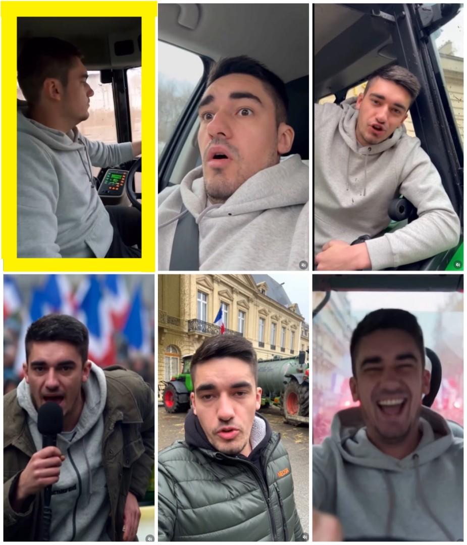 В профилa си в YouTube същият потребител открито признава, че създава видеа с изкуствен интелект – в описаниeто на профила е посочено: "На 8 декември разкривам своите AI тайни". В профила в Instagram пък е посочено истинското му име – "Самюел Дебезьо" (Samuel Debaisieux). Сред последните му видеа се открояват кадри със същия мъж, облечен в сив суичър и каращ зелен трактор – как отвлича полицейска кола, например тук, или как пръска кафява течност по полицаи пред резиденцията на френския президент – тук.