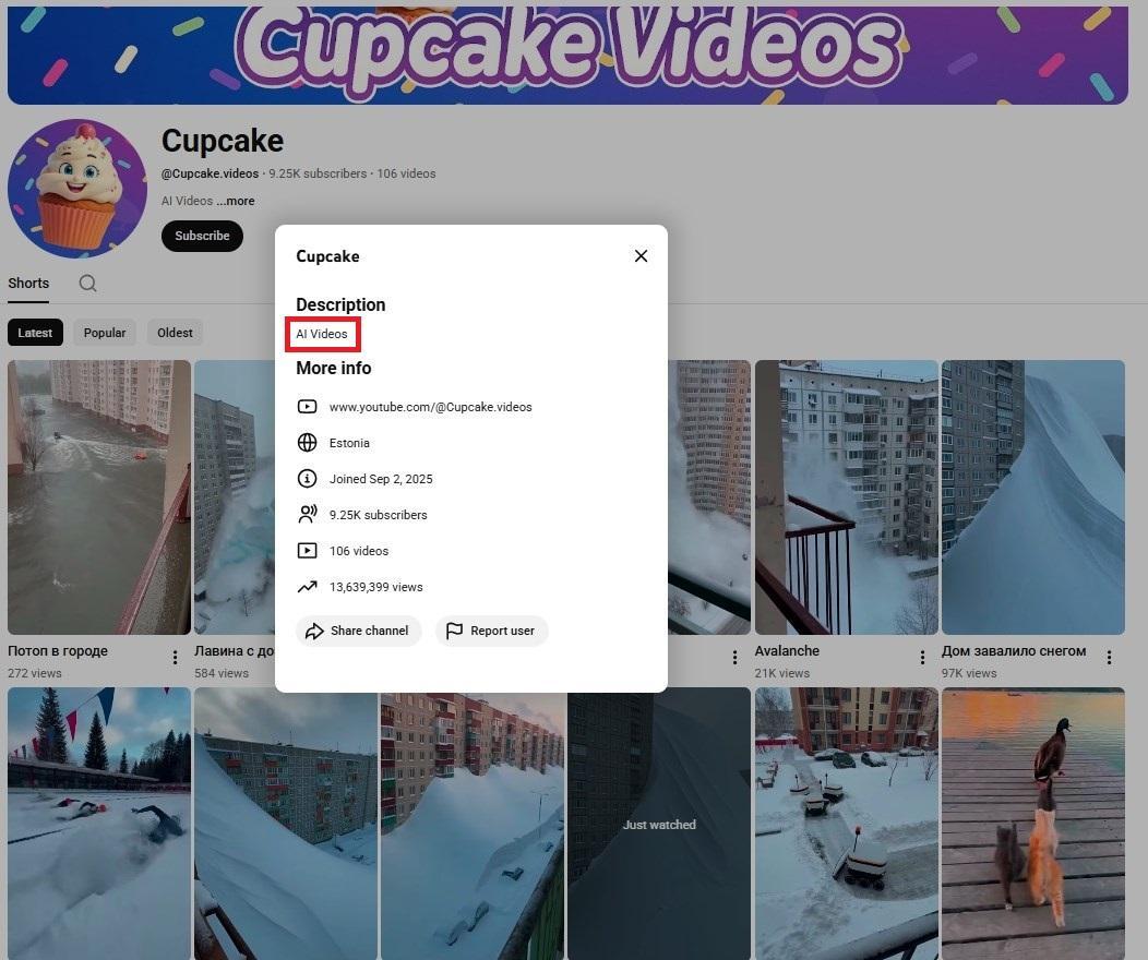 Клипът, озаглавен Snowfall, е маркиран в YouTube като "променено или синтетично съдържание", а в описанието на канала също е изрично посочено: AI Videos.