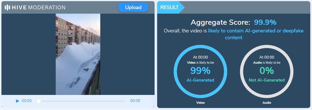 Същият създател на съдържание стои и зад второто кратко видео, което показва нещо, което изглежда като стена от сняг, покриваща жилищна сграда, с мъжки глас, който казва на английски: "Трудно е да повярвам, че е до деветия етаж". Клипът, озаглавен Snowy Day, е публикуван в същия YouTube акаунт на 16 януари. Това видео също е обозначено като "променено или синтетично съдържание".