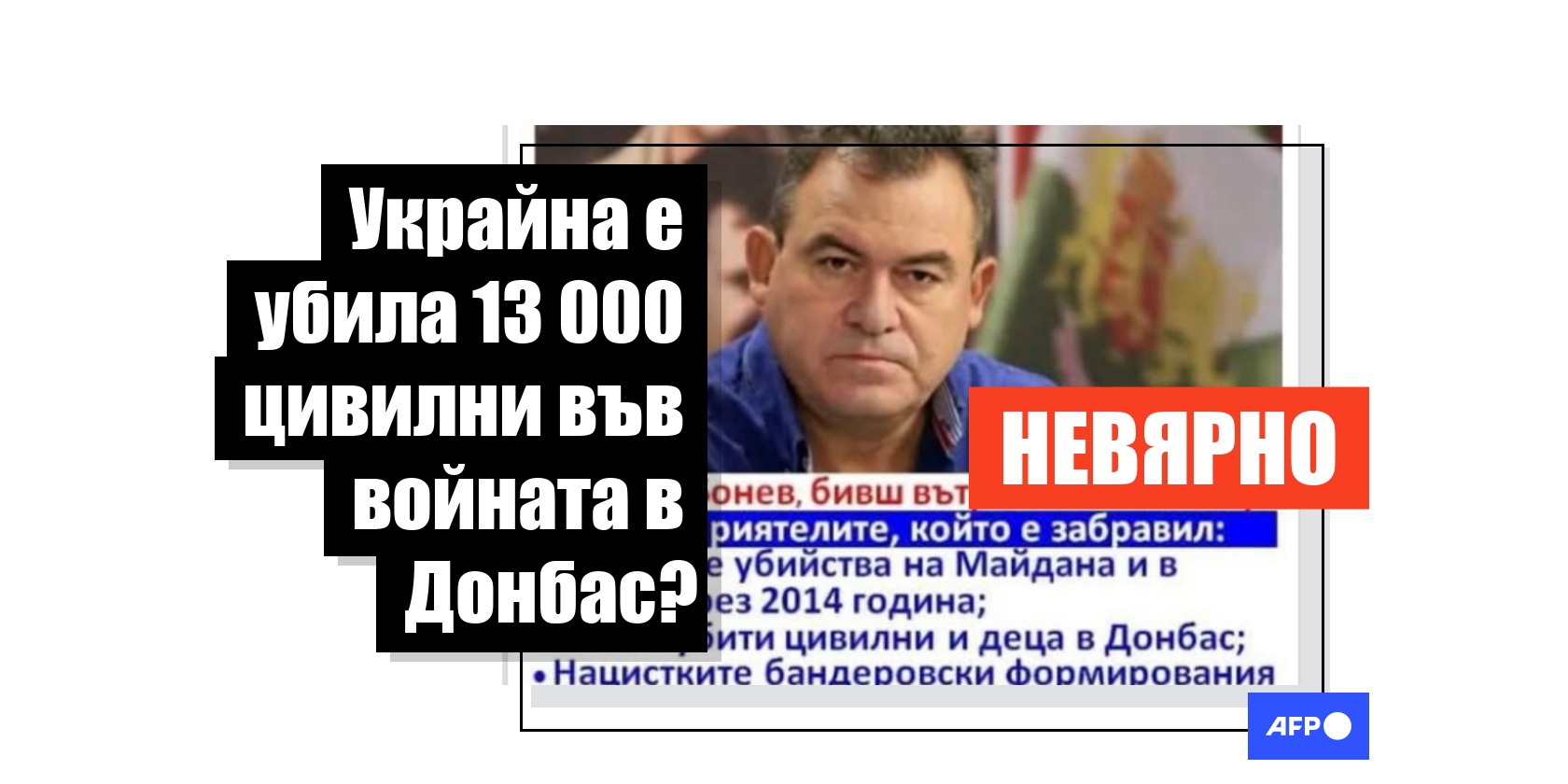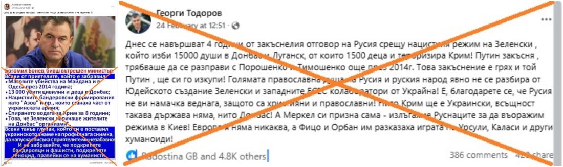 Други публикации в същата социална мрежа споделят текст, приписван на бившия български министър на вътрешните работи Богомил Бонев, в който се твърди, че "13 000 цивилни и деца са убити в Донбас". Намерихме такъв текст в публикация на Бонев във Facebook от март 2022 г.