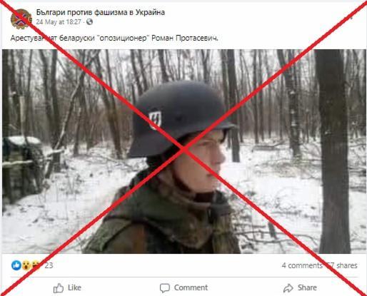 В публикации във Facebook се твърди, че Протасевич се е присъединил към батальона, обучавал се е като войник и се е сражавал срещу проруските сепаратисти в Донбас, което го прави "белоруски есесовец" и "терорист". Някои публикации в социалните мрежи повтарят почти дословно този блог, чийто автор Диана Михайлова често публикува антиукраинско съдържание: