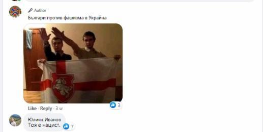 Под поста в групата “"Българи против фашизма в Украйна" като коментар е публикувана именно снимката с Aхроменко и неговия приятел :