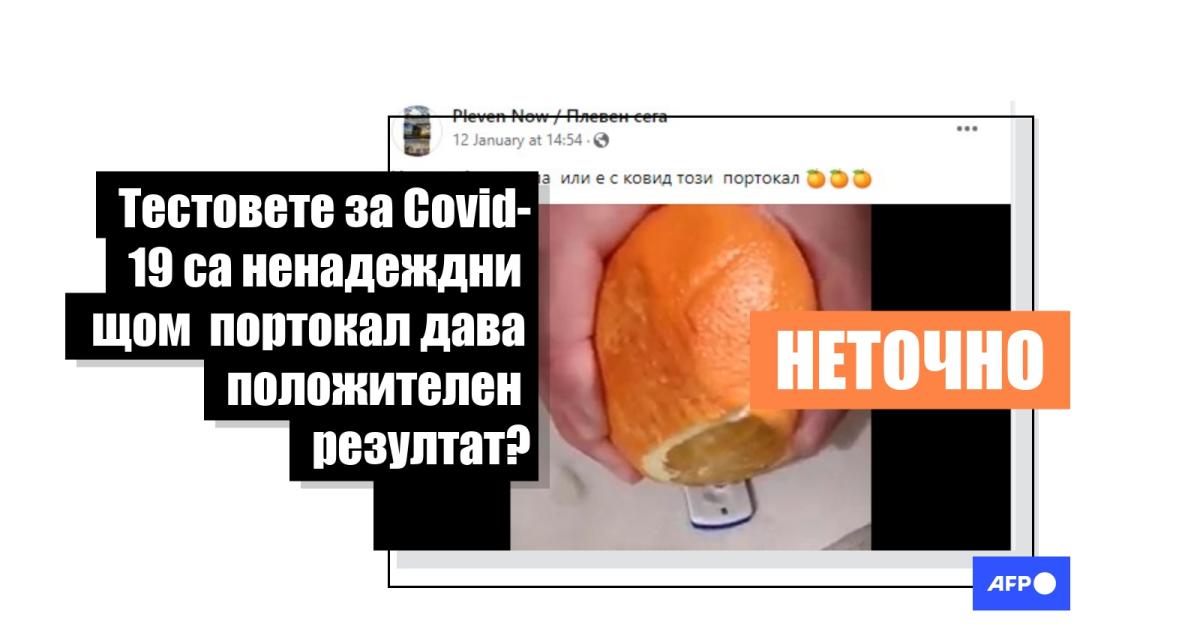 "Ковид 19," посочва описанието на кратко видео споделено във Facebook на 10 януари 2022 г., и споделено над 9600 пъти оттогава. На него виждаме как някой изстисква сок от портокал върху антигенен тест за Covid-19 от неизвестна марка. Бързо след това тестът сякаш дава "положителен" резултат, което кара много потребители да критикуват надеждността на тестовте за откриване на Covid-19 , а оттам и официалните данни за броя на заразените. Някои се шегуват с клипа.