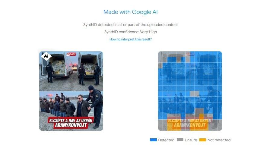 Унгария арестува седем служители на украинска компания за превоз на пари и злато, пътуващи от Австрия към Украйна, подозирайки ги в пране на пари и допълнително влошавайки и без това напрегнатите отношения с Киев. Предполагаеми снимки от акцията започнаха да се разпространяват в социалните мрежи на унгарски и различни други езици, сред които и български. Но сравнението на тези изображения с официалните кадри, публикувани от унгарските власти, както и визуалните неточности в самите снимки, ясно показват, че те са създадени с помощта на изкуствен интелект. Това се потвърждава и от специализиран инструмент за засичане на изкуствено създадено съдържание.