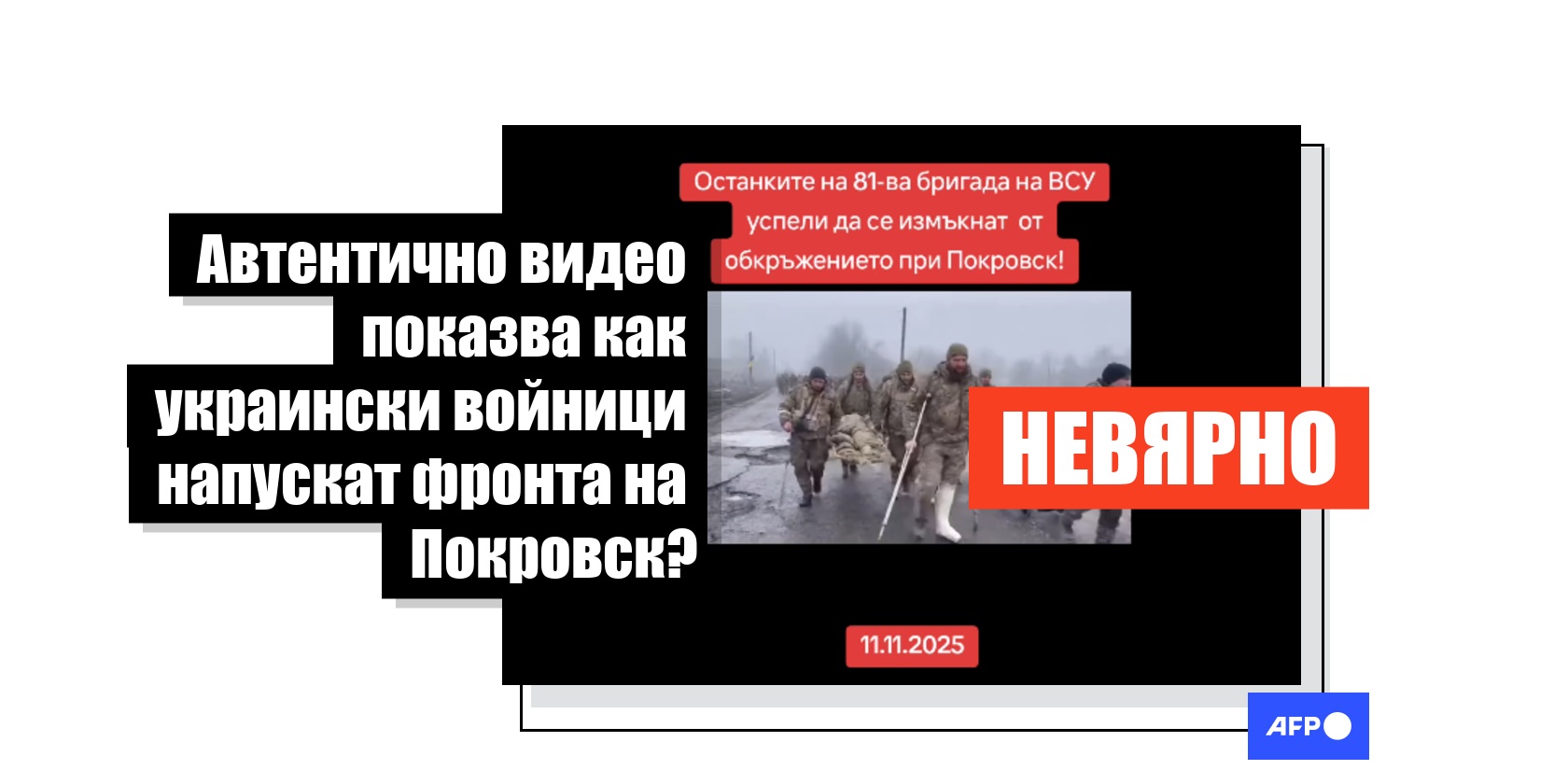 Поредно видео, създадено с изкуствен интелект, се споделя с невярното твърдение, че показва истински украински войници, които се предават Публикувано: 25 ноември 2025 г. в 17:20