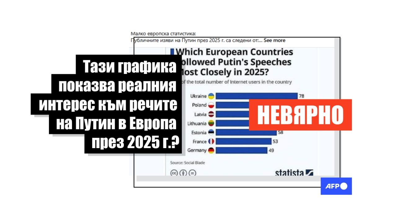 Снимка Публикувано на 27.11.2025 Изфабрикувана графика невярно представя интереса на европейците към речите на Путин